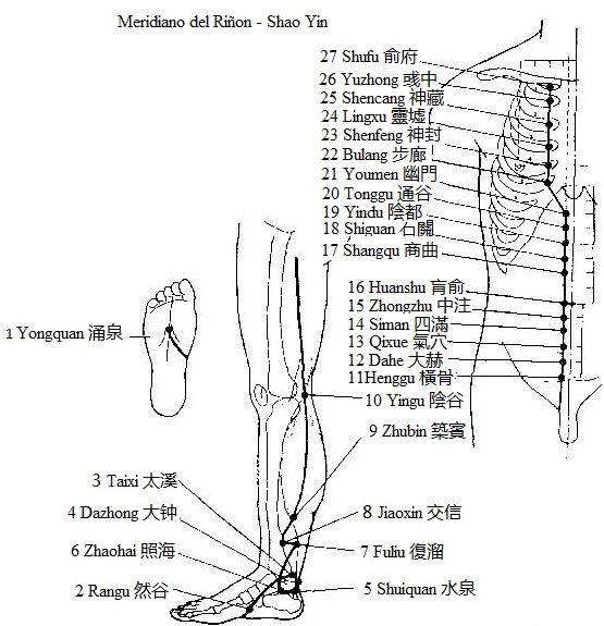 El Yin Qi circula por el cuerpo a través de canales que llamaremos meridianos, estos canales tienen un trayecto interno y un trayecto externo. Este último es el que está expuesto superficialmente y puede ser manipulado a través de los puntos de cada meridiano. Este tramo es el que analizaremos a continuación.